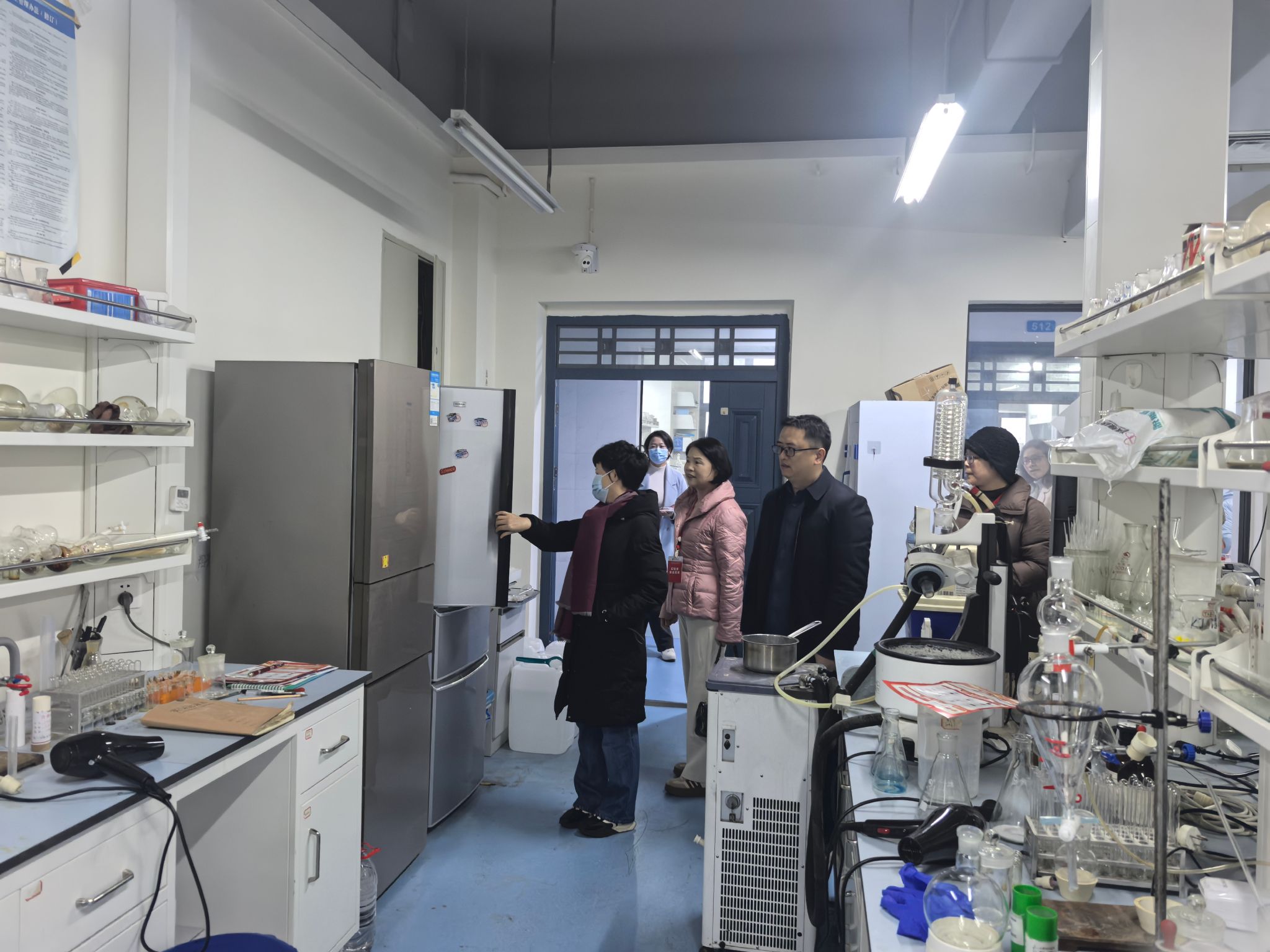 两院党委书记和实验室工作负责人带队对科技工业园A座、C座区域的实验室进行了安全检查。在检查过程中,老师们对实验室基础设施安全、空间布局利用、消防应急设施、危化品与废液废渣管理、特殊仪器使用管理、实验室标识与卫生等方面进行了探讨。